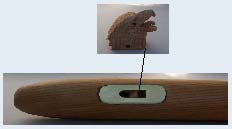 Line the front of the carved top up with the front of the divider between the two chambers. You can adjust it back and forth to slightly change the tone and the pitch.