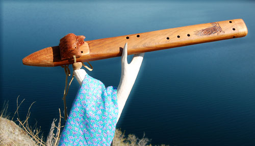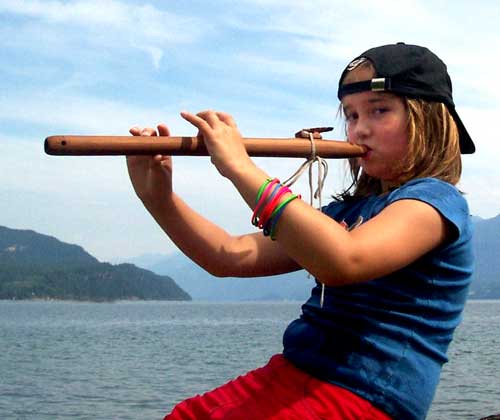 I use only olive oil and local beeswax to finish my flutes, bringing out the grain while allowing the wood to breathe and keeping you safe. All flutes come with care instructions, a fingering scale . You also have my support as long as you need it. All questions are welcome before and after the sale. These flute styles are available: Single Side by Side Drone FlutesHarmony Drone Combination Flutes Tiny Cedar FlutesThis is the perfect little flute to take with you...backpacking, to the beach, to a sweat, to a powwow. It is only 18-20 inches long. It is as light as a feather weighing only 3 ounces, about the weight of a couple of candy bars. Leave the candy bars behind and take the flute. The candy bars will only melt, and the flute will make you feel better than the candy bars. The holes on this flute are small and close together, making this flute perfect for an older child (see the picture of my grand-daughter) or someone with small hands (you big guys can play it too). This flute may be small but it has a big sound. The tone is rich and clear. They will hear you on the other side of the lake, or in the next meadow if you are hiking. This will be a good flute to play with other instruments. I love playing mine while my friends drum. Available in the pentatonic scale based in G.