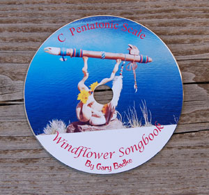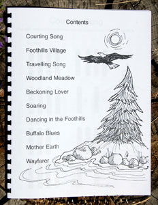 At long last my new songbook is finished and ready for you to enjoy. The songbook includes 10 original songs, for the Native American five hole pentatonic , flute which are written out with symbols so that you need no experience with reading music to use it. (See sample picture below). The book comes with a CD of all the songs so that you can learn them by playing along with the CD. You can choose a CD in one of the following pentatonic keys: Low C, Low D, Low E, F#, G, A, High C and High E These songs can also be played with a six hole pentatonic flute by keeping the third hole down from the mouth piece covered while you are playing. This songbook is perfect for flute circles. There are no clashing notes with the pentatonic key so you can have lots of fun if other members have flutes with the same pentatonic scale as yours. You can play the songs as rounds or have some people play all the repeats whiles others play the song through twice without repeating. You can even play two different songs at the same time. You will only be limited by your imagination. |